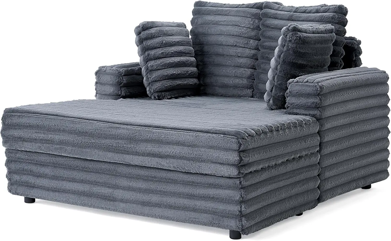 - Premium Materials: The lounge sofa features soft striped faux fur fabric and a stylish striped texture. Its 6-inch dense sponge seat cushion provides exceptional comfort and support, inviting you to relax and unwind after a long day.